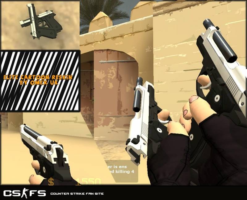 Модель - cartoon elite reskin для Counter-Strike Source. Отличная альтернатива стандартному Dual Elites, отлично смотрится и превосходно детализирована,